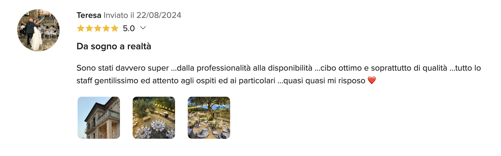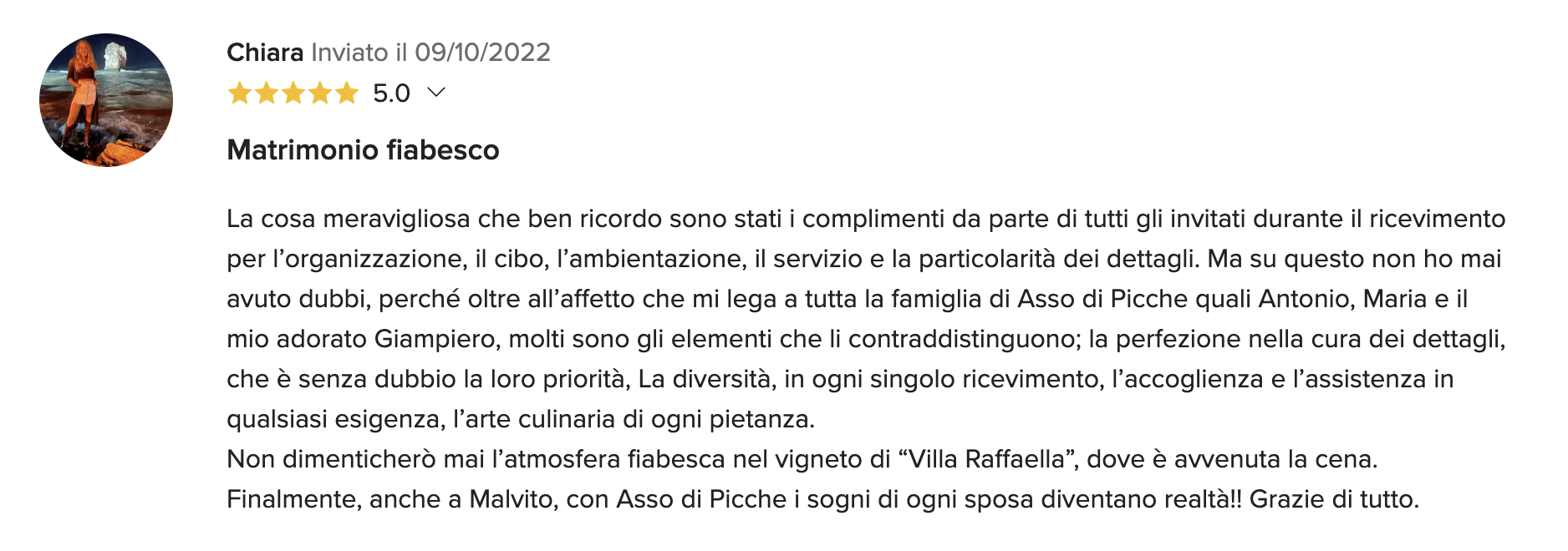 Lo staff è costituito da professionisti del settore, in grado di seguirvi e consigliarvi sulla scelta di ogni dettaglio, per organizzare un ricevimento di alto livello, in cui ogni particolare della tavola e degli allestimenti sia perfettamente in linea con i vostri desideri.