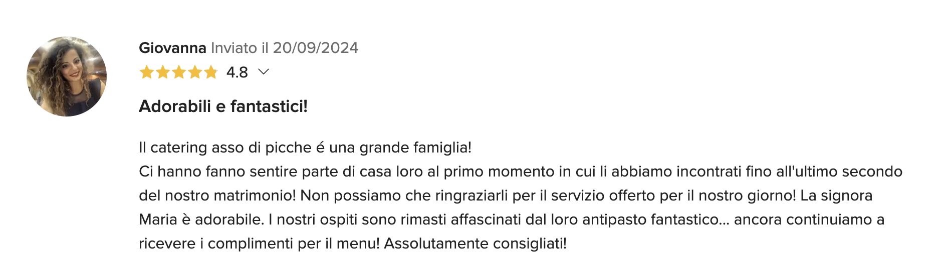 Il servizio di catering è disponibile a domicilio per eventi privati anche per poche persone