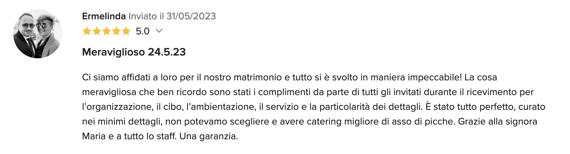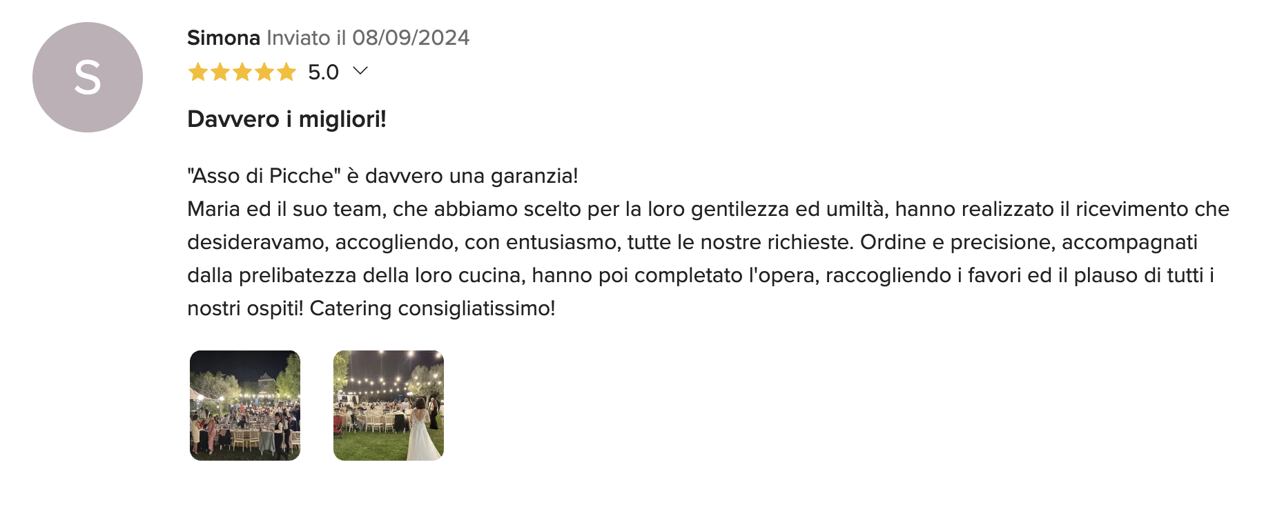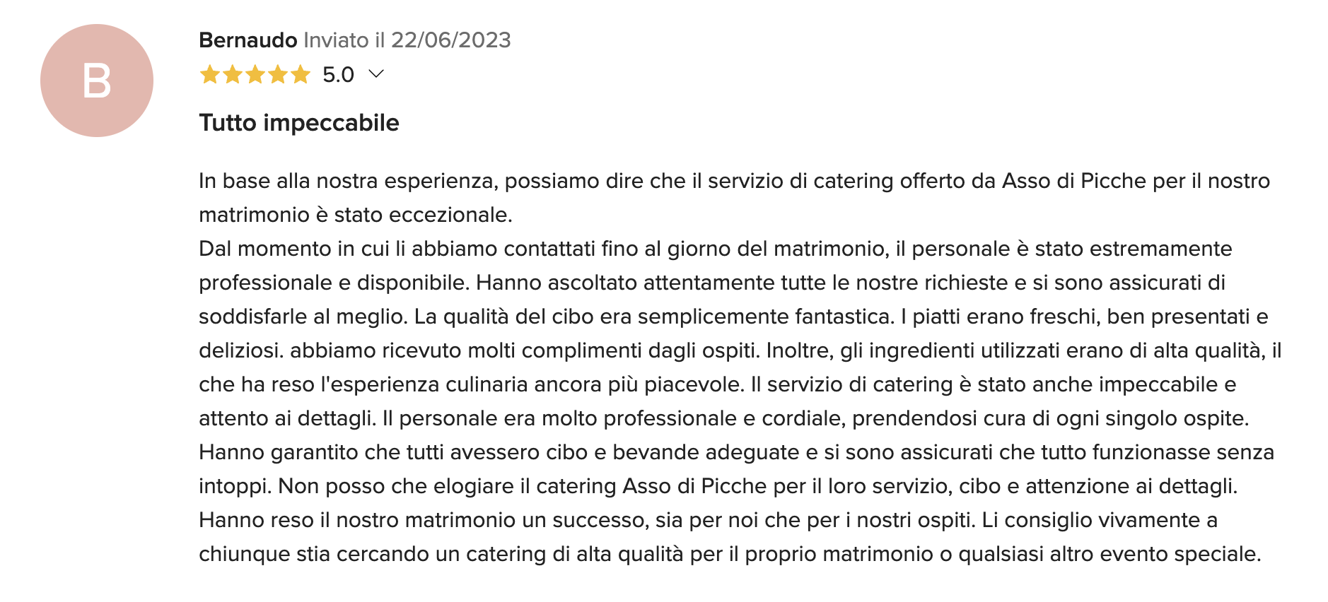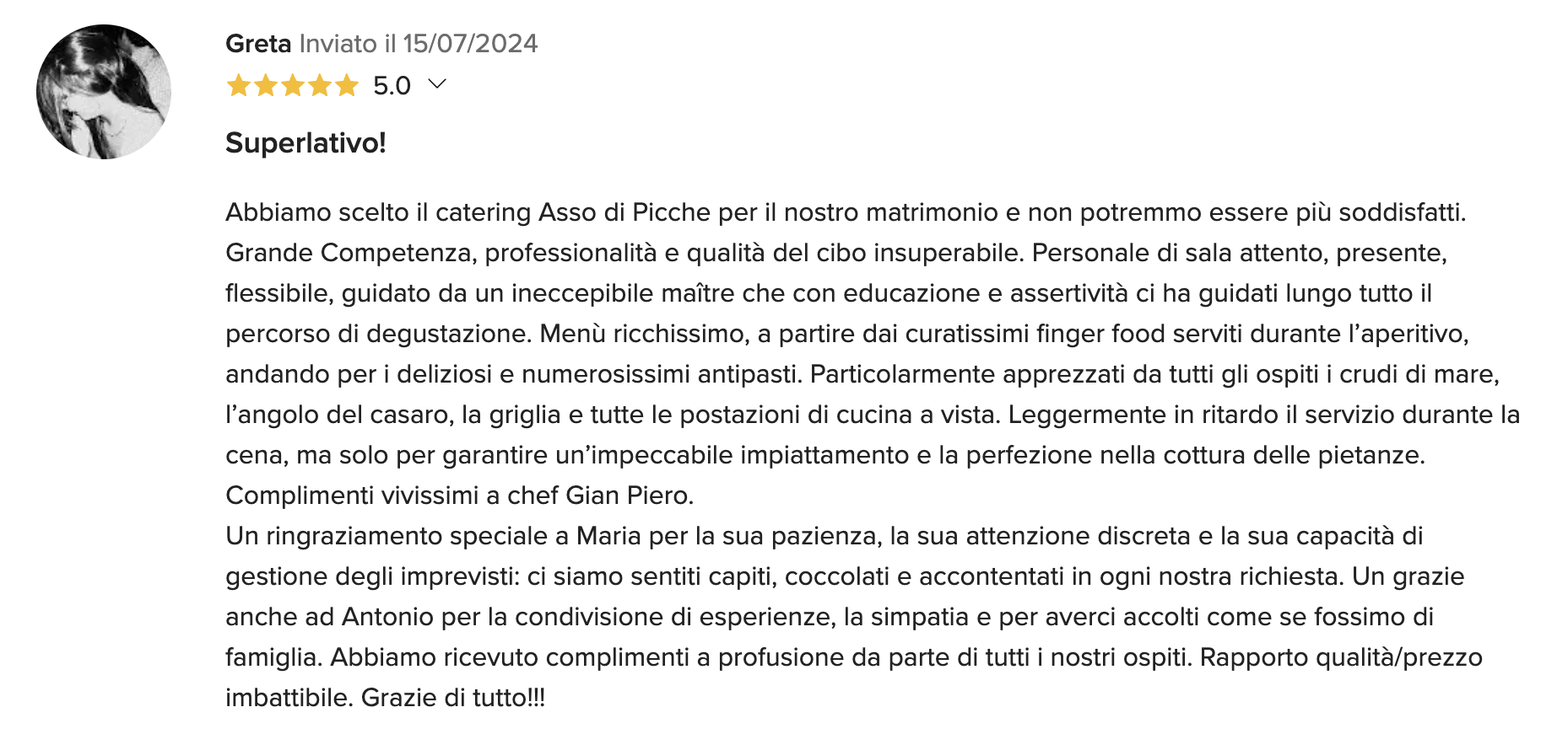 Gli chef e il personale del Catering Asso di Picche prepareranno per voi dei deliziosi e originali piatti, sarà un tripudio di sapori, sapientemente abbinati e presentati in tavola con grande raffinatezza. Creiamo anche menù speciali per persone che soffrono di intolleranze alimentari, per celiaci, vegetariani e vegani.
